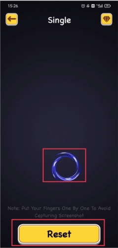 4、倒计时解锁完成后,屏幕上最后留存手指的玩家即为被指定者。其他玩家可让该指定者做某事,完成后,点击下方的“Reset”重新开始。