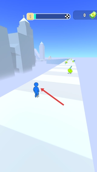1、开局行动:操控蓝色小人在道路起步,开始骑行挑战。