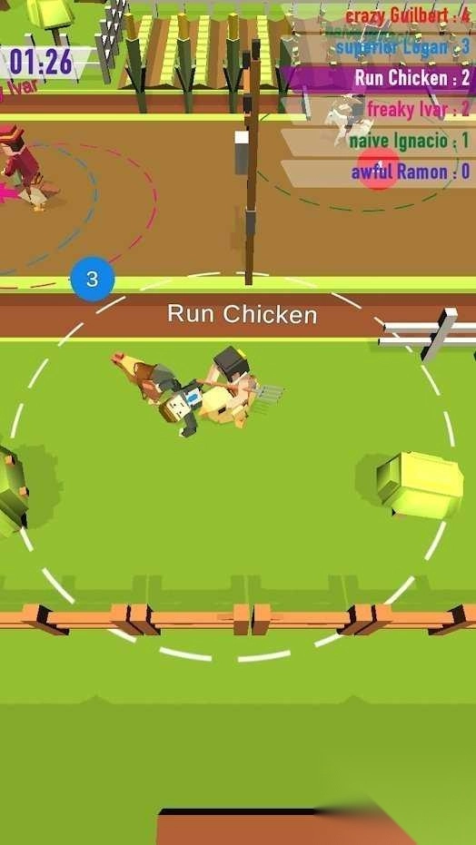 《跑个鸡儿》堪称一款极具魔性的沙盒风格趣味精品。玩家身处农场场景,要骑着坐骑在广阔的开放空间里自由追逐。一旦敌人进入攻击范围,便主动展开攻击。该作品巧妙融合了IO竞技元素,凭借简单的操作,让各个年龄段的玩家都能尽情体验捕捉牲畜、更换坐骑颜色的乐趣,在充满田园气息的3D画风中释放压力,畅享无拘无束的竞技快感。