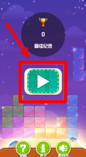 1.点击主画面中央绿色播放按钮,即可开始游戏挑战,进入方块消除的得分与闯关流程模式。