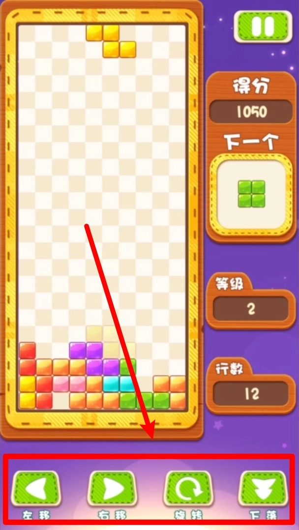 2.底部控制区包含左右移动、旋转和快速下落等功能按钮,灵活使用能有效提升操作效率。