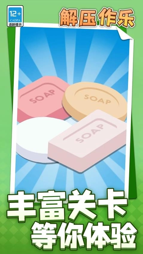 解压作乐是一款超有趣的切肥皂休闲小游戏。进入游戏,你会看到各种颜色和形状各异的肥皂,利用特定工具对它们进行切割。只要把这些肥皂统统切成小块,就能赢得关卡胜利。整个闯关过程十分解压,毫无挑战难度,玩家可以尽情畅玩,随时都能加入。游戏整体情况会有不同变化,你得留意肥皂的类型,这样才能找到最适合的切割方式,像斜切、正切之类的,只要能达到完整效果就可以采用。在挑战过程中,还会出现非常独特的奖励,只要马上找到所需条件,就能获得相应物品。要是你对这款游戏感兴趣,那就赶紧来试玩体验一番吧!