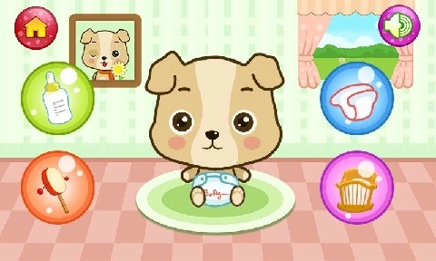 1、从初始界面选开始,进入不同场景,通过操作图标,完成照顾角色任务。