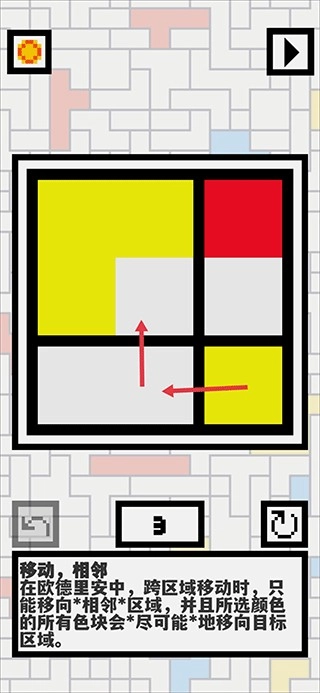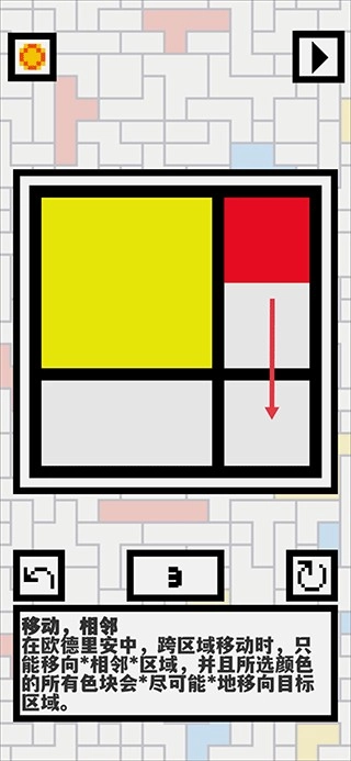 2、倘若相邻的黑框内存在不同颜色的色块,那么色块便无法移动。每一关都设有目标要求,达成目标后即可进入下一关。