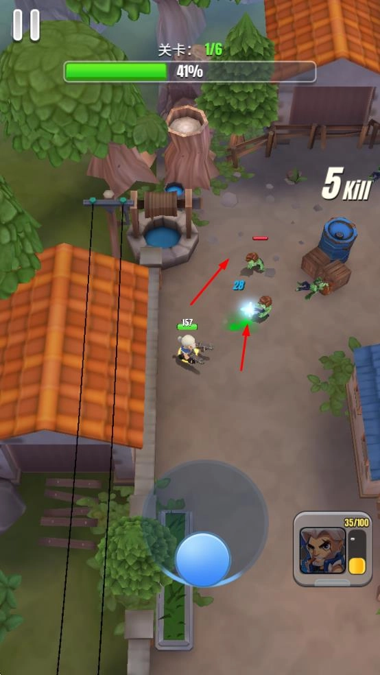 1. 通过操控虚拟摇杆来移动角色,于村庄场景中推进关卡,并对地图展开探索。
