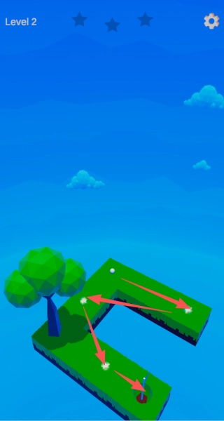 1. 仔细观察当前关卡地面的具体形态以及球洞所处位置,据此对球从起始点滚动至洞口的大致路线进行预判,进而明确地面需要调整的方向。