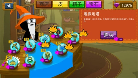 雕像炮塔:雕像会回复一定生命值,同时发射强力激光进行自我防护,此状态持续20秒。