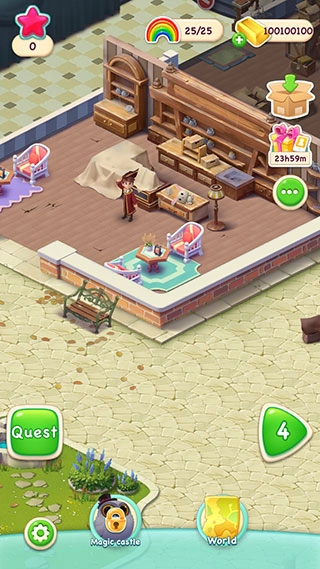 5、接下来在主界面中,点击位于左下角的任务按钮,通过消耗星星对庄园进行翻新。