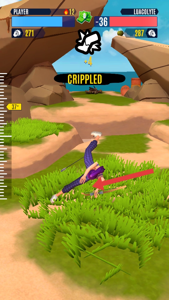 2、射箭操作及轨迹调整:以手指操作拉开弓弦,将箭调整到适宜角度后松开,从而完成射击动作,射击的精准程度取决于对手感的把控;界面中的白色虚线会展示上一轮的射击轨迹。