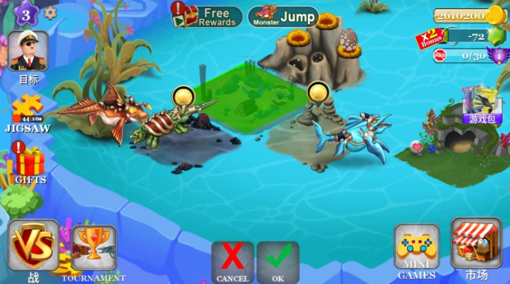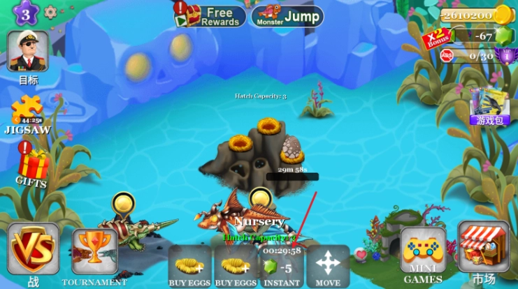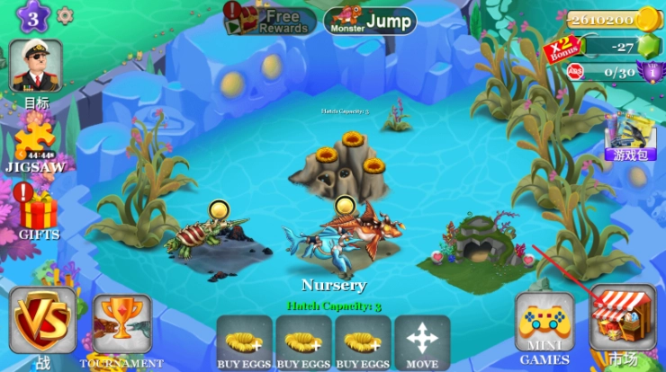 2、海底城市的建设与管理:玩家要对城市布局进行规划,搭建养殖池、饲料仓库之类的设施,提升资源产出的效率。与此同时,还要管理海怪的栖息地,依据生物的属性来调节环境参数,促使海怪更快地成长。
