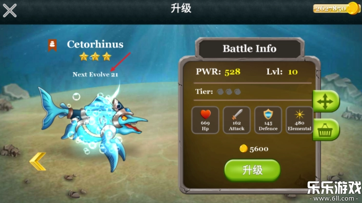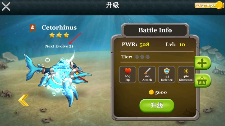 6、点击海怪可进行升级,当达到特定等级时还能实现进化。