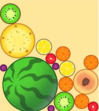 2. 当相同的水果相互消除后,会生成一种更大的新水果(类似于2048的玩法),其中最大的水果便是“大西瓜”(这也是游戏取名为合成大西瓜的原因)。