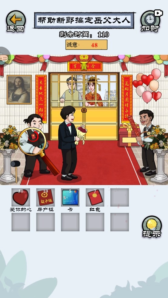 -借助放大镜仔细查看左侧的伴郎,从而获取红包。