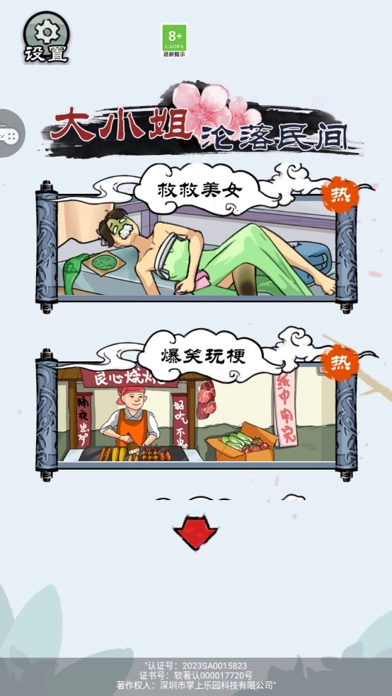 《大小姐沦落民间》是一款洋溢着古风韵味的益智解谜闯关游戏。它巧妙融合推理、记忆、数学等诸多烧脑元素,对玩家的智力与思考能力发起挑战。在游戏中,玩家将化身为勇敢的探索者,肩负起解救被困于关卡中的大小姐这一重任,尽快达成目标的同时,领略妙趣横生的剧情以及民间生活场景。该游戏画风精致,古典气息浓郁,画面细节满满,能让玩家仿若置身古代场景之中。其玩法新颖独特,关卡丰富多元,玩家得运用推理、记忆、数学等各类技能来突破重重挑战,十分适合钟情古典风格与热衷挑战智力的玩家前来体验。