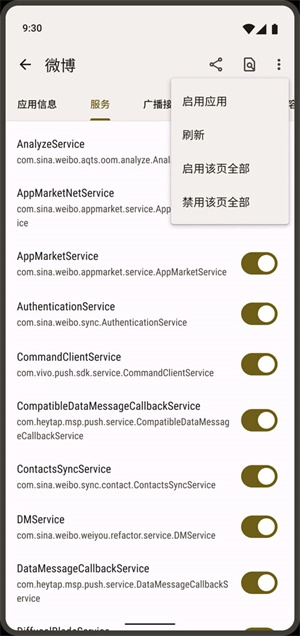 4、在此处,你能够查看应用程序的基本信息,包括广播接收器、服务、活动等,同时要将所有与广告相关的按钮全部关闭。