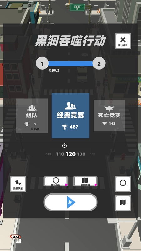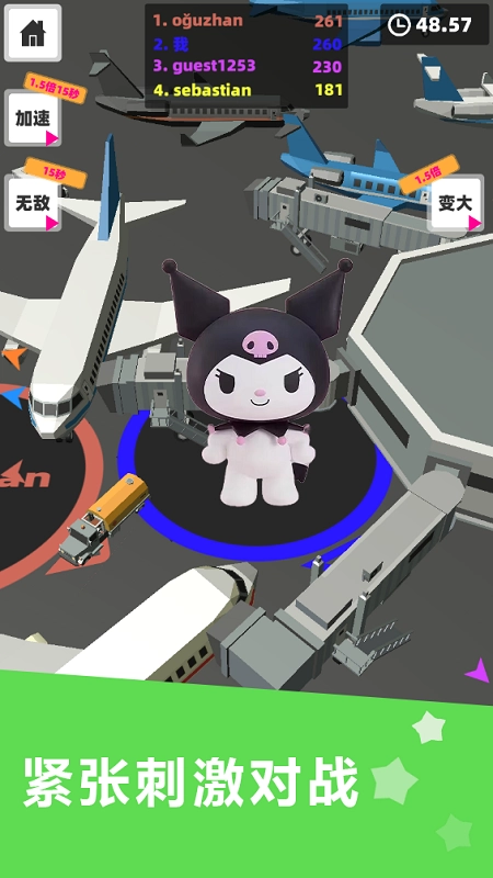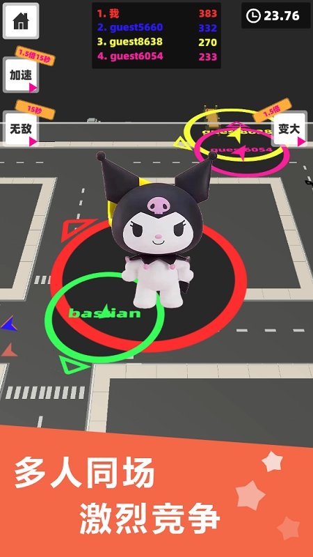 2、自由行动,前往不同区域,尽情无限吞并各类建筑设施,直至分数达标或时间用尽,完成闯关或竞技。