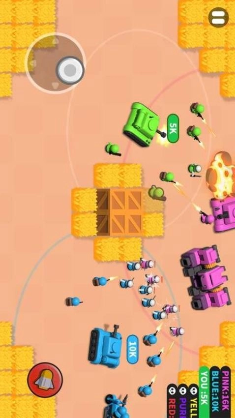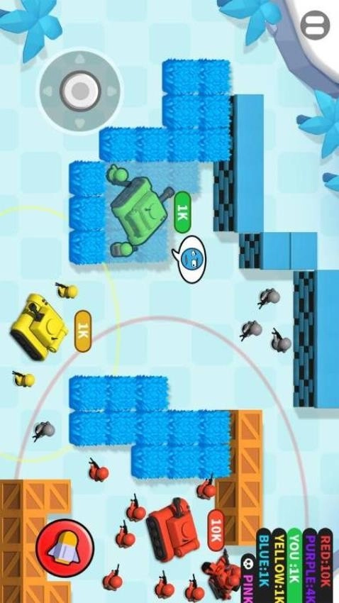 四人坦克大战是一款超好玩的策略类游戏。它有着简约舒适的卡通画面风格设计,为你带来趣味十足的坦克大战玩法,采用多人在线战斗模式。游戏主要任务是协同合作,共同激战敌方坦克,完成一系列精彩的挑战任务。 这款休闲模拟坦克大战游戏,新增了4种不同模式,能满足玩家多样化需求。每个颜色对应不同玩家,而且坦克会自动旋转,玩家需通过点击按钮控制己方坦克的开火方向与移动方向,十分考验技巧。此外,全新的坦克对决过程,大大提升了游戏可玩性,让你收获有趣的坦克战争体验。消灭敌人获取胜利,就能赢得更多奖励。感兴趣的玩家千万别错过,随时都能尽情畅玩。