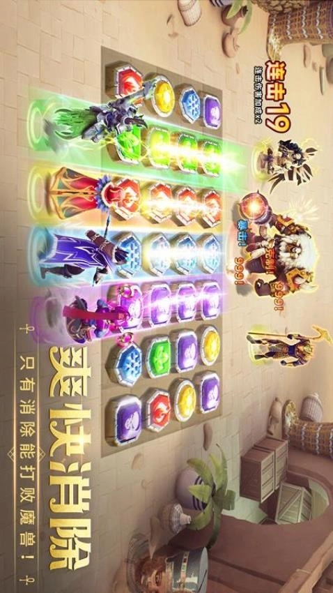 这款游戏融合了三消与英雄卡牌的战斗系统,加入属性克制玩法,让玩家以策略展开博弈。