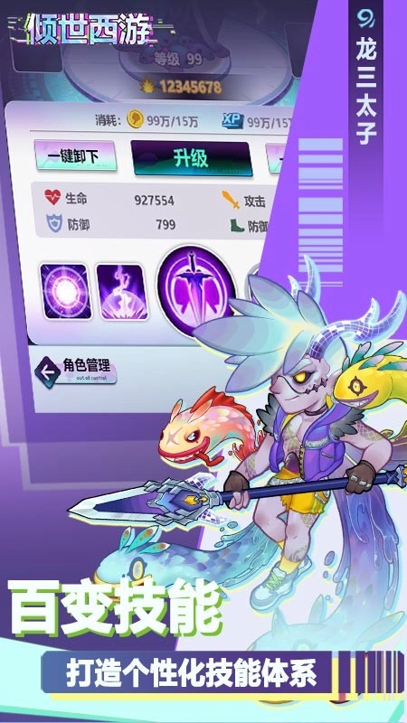 《倾世西游》是一款具备赛博画风的放置休闲类游戏。在这款游戏里,有着诸多能力各不相同的英雄角色,充斥着潮酷的赛博元素,还有情节跌宕起伏的故事,以及新颖有趣的回合战斗模式。这里有一个全新的世界与故事,等待你来悉心培育,让它们生根发芽,进而茁壮成长。