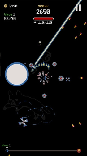 2、玩家将在外太空中战斗面临着许多陨石,需要防止飞船被发射陨石攻击。
