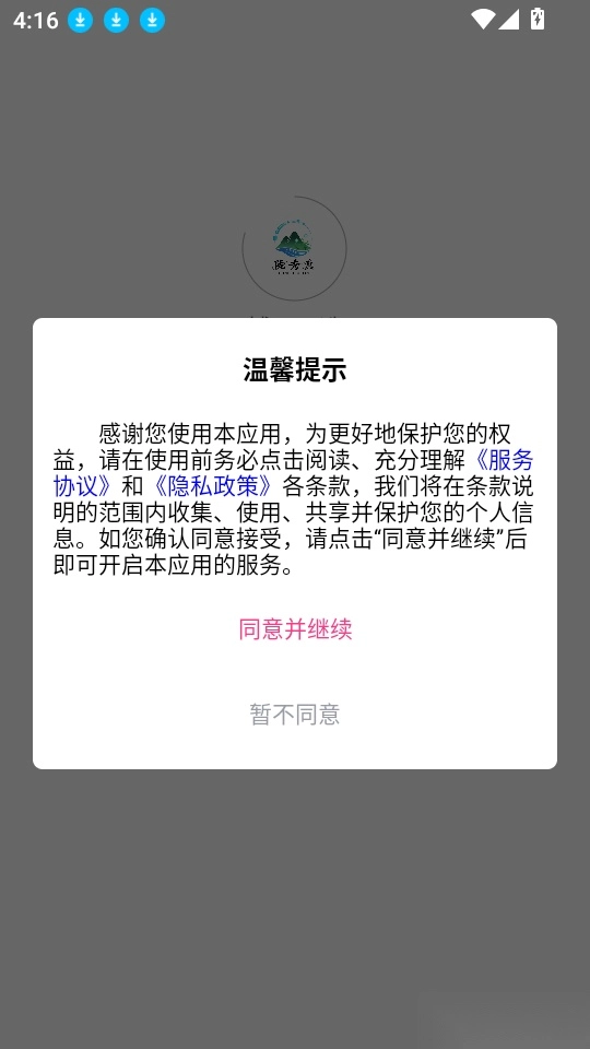 1. 第一步,打开软件查看温馨提示信息,之后点击“同意并进行”按钮进入。