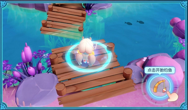 1、要是在水域里瞧见鱼影,就能够前往周边进行钓鱼。当出现钓鱼标记时,点击右侧的鱼竿,便可开启钓鱼。
