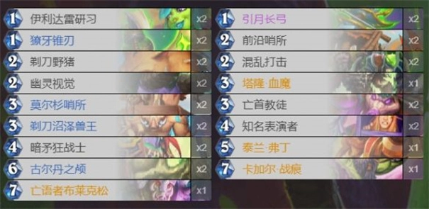 若要在不使用的情况下召唤50个亡语随从,不妨采用下面这套特化成就卡组。充分利用塔隆血魔打包开包的操作,大概玩个十来把就能达成目标。