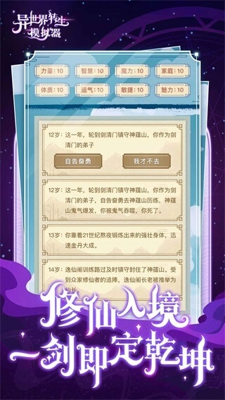 异世界转生模拟器的最新版本,是一款极富创意与想象力的剧情文字类游戏。在这款游戏中,玩家凭借文字的描述,仿佛能够跨越时空,开启一段满是奇幻色彩与冒险情节的旅途。玩家通过仔细阅读文本内容,深入知晓角色的背景故事、既定目标以及所经历的种种遭遇,进而做出一连串的决策,这些决策会对剧情的发展方向以及最终结局产生作用。游戏内设置了多条截然不同的剧情线路和多样结局,每一个决策都在故事中有着深远的影响力。该游戏构建的世界观独特且宏大,魔法、战斗、成长等诸多元素均被囊括其中。玩家会与形形色色性格差异极大的角色展开互动,同时还要面临各类道德与情感层面的考验。