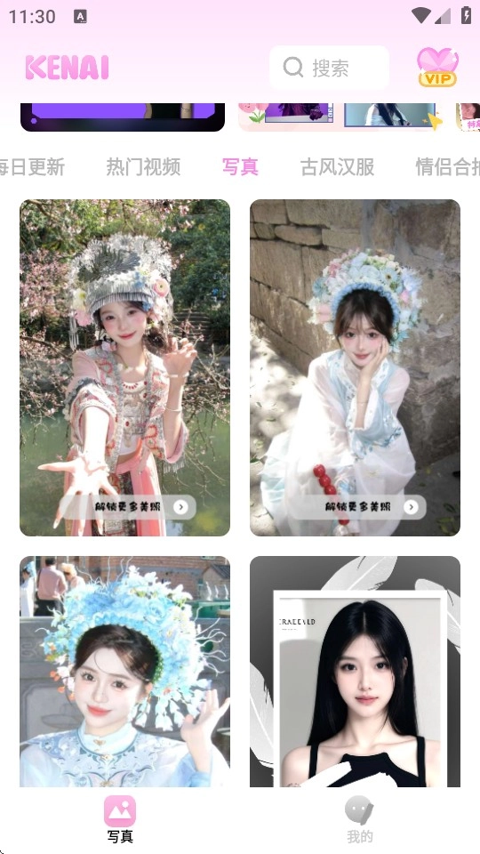 1. 打开并进入可奈相机,会直接进入写真页面。在该页面,你能获取到丰富且热门的写真模板信息。