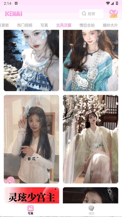 1、开启可奈相机,随即直接进入写真首页,每日均有热门素材与拍照模板推荐。