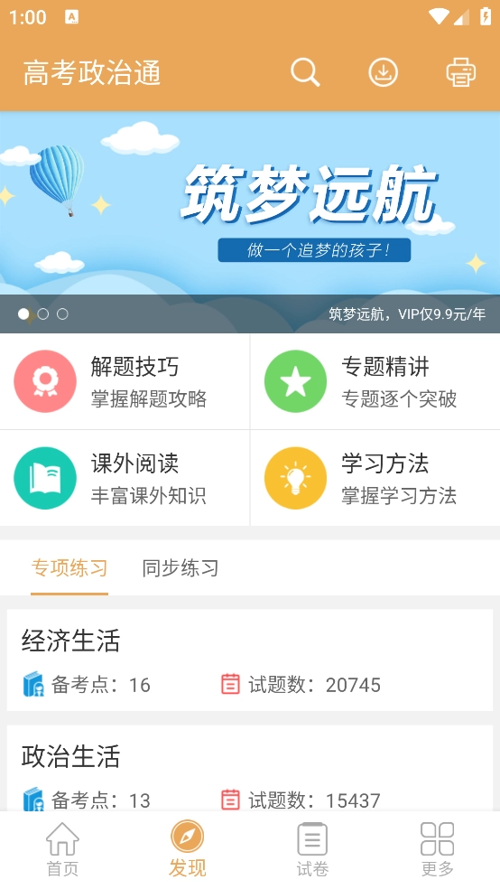 高考政治通,这是一款专门面向高中生精心打造的政治学习与复习平台。它全面覆盖了经济生活、政治生活、文化生活、哲学与生活以及政治常识等核心模块内容。不仅如此,还配备了海量丰富的题库、针对性强的专题训练以及详细的真题解析。同时,还提供答题技巧分享、名师专业指导,以及课外阅读素材和各类学习方法文章,全方位助力考生透彻掌握高考政治的重点与难点。该软件能够与部编版教材目录同步,拥有知识点巩固、真题训练、背诵复习等实用功能,无疑是助力高考政治高效提分的理想工具。