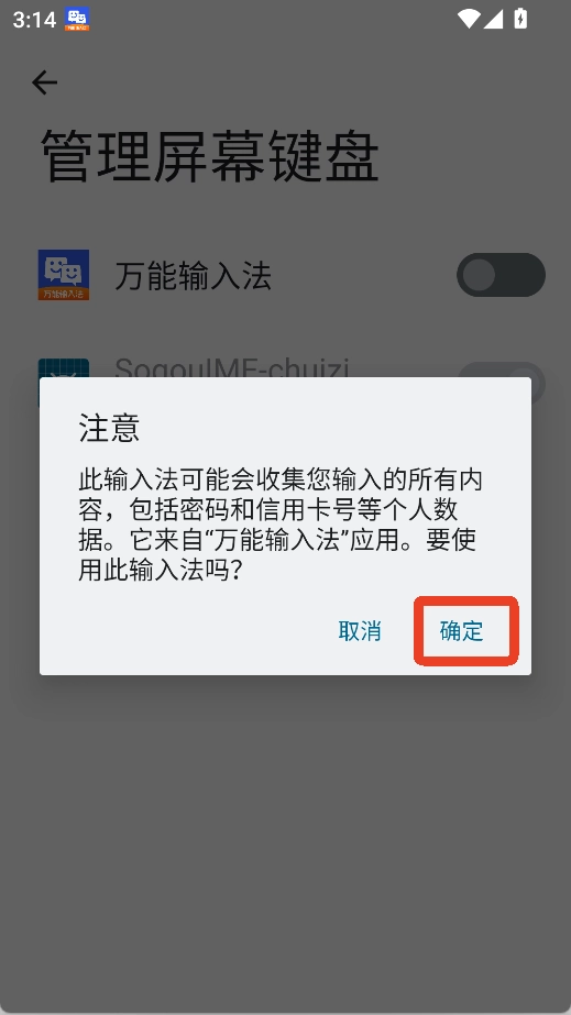 3、用户必须开启万能输入法的权限,方可继续使用。