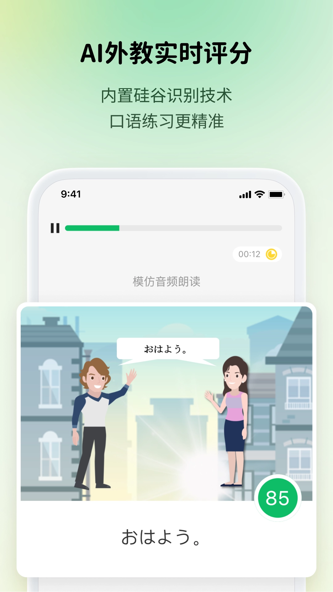 智能系统会对你的口语发言进行打分,这样你就能了解自身口语状况,进而针对薄弱之处加以纠正。