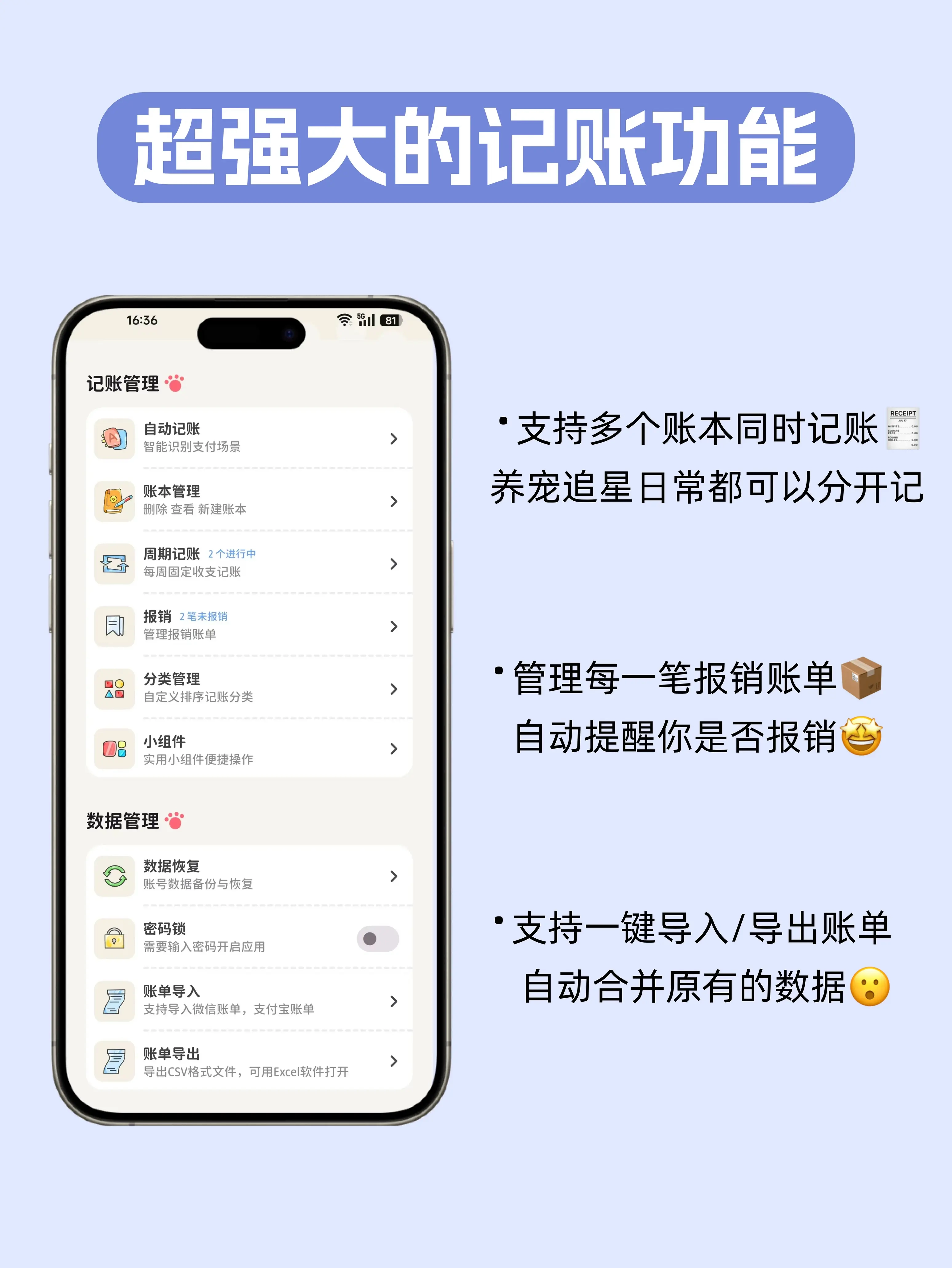 4、密码锁功能旨在保护用户隐私,能有效保障个人消费数据的安全,防止他人随意查看账单信息。