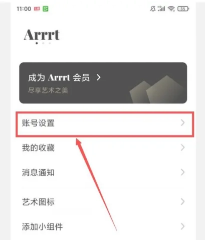1. 开启Arrrt来到首页,首先点击右上角的“账号设置”入口。