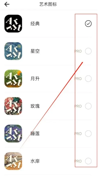 2. 在个人页面里寻觅到“艺术图标”这一选项,点击后进入图标设置界面。