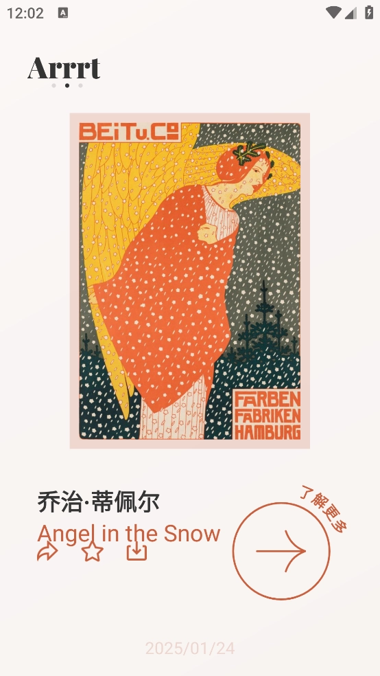1、Arrrt随身艺术馆每日都会推荐一幅名画,助力用户拓宽对艺术品的认知。