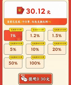 红包奖励是按百分比提现的。