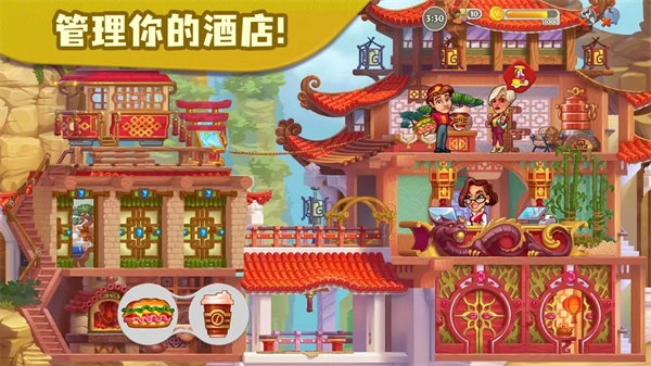 游戏围绕模拟经营玩法展开,其核心在于玩家要运用合理策略化解酒店危机,玩法极具真实感。