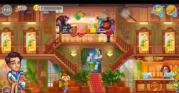 除了知悉员工的任务,了解游戏的三个主要目标同样至关重要。其一为赚取硬币,在完成每一个级别时获取并积攒硬币,这些硬币有助于你对设备进行升级,以及重新装修酒店,从而为所有客人提供更优质、更便捷的服务。其二是接待客人,要通过提供最佳服务让客人感到满意。最后,要朝着让客人微笑的目标努力,迅速且高效地为客人服务,使客人露出笑容,如此在每个级别结束时便会带来额外收益。
