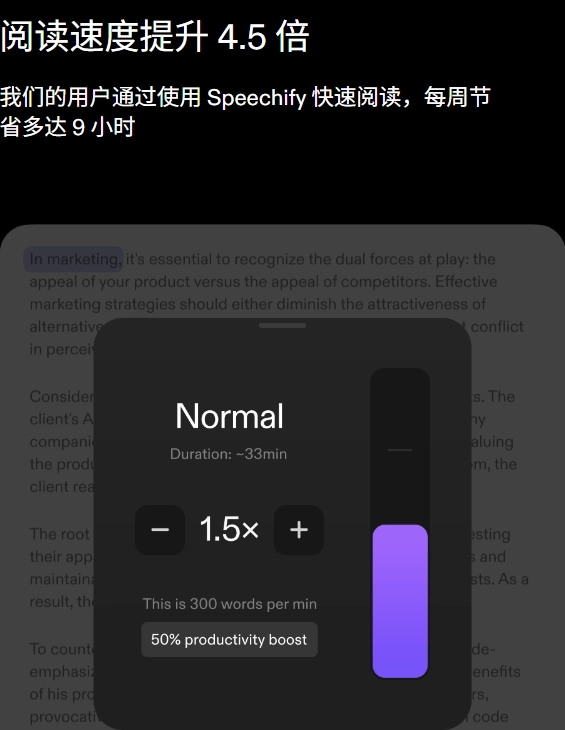 2、不必一直盯着屏幕,Speechify可把您文档里的内容转化为语音,助力您轻松又高效地获取信息。
