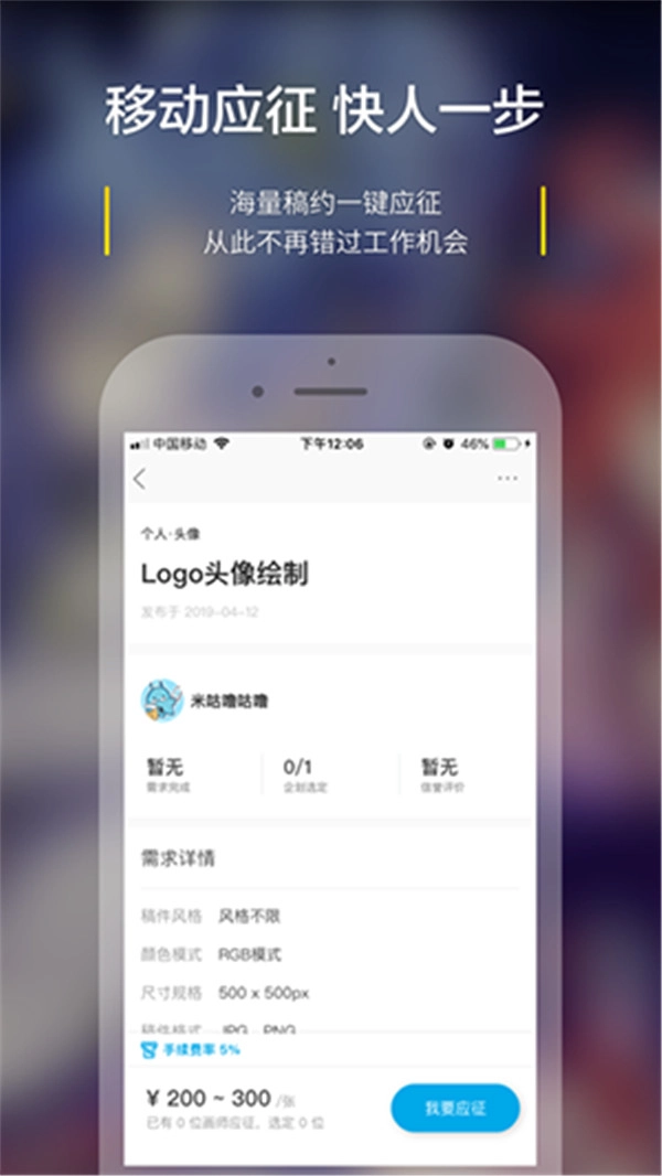 2. 应征功能正式上线,画师们能够在任何时间、任何地点抢占工作机遇。