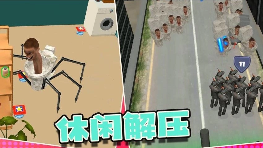 5、操作轻松,可尝试不同技能。各类技能组合有几率带来丰富的加成效果,让你能轻松应对各种强大的马桶人战斗。
