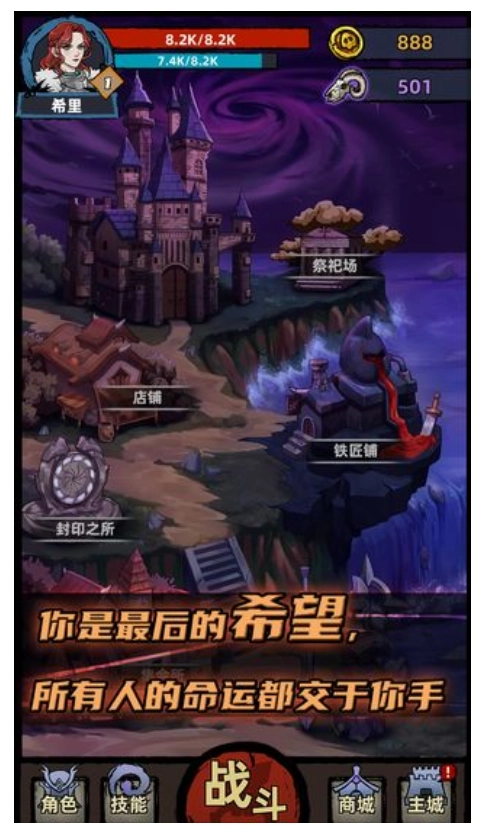 暗黑风格的游戏画面,召集各路英雄角色,组建强大队伍,不断闯关前行。