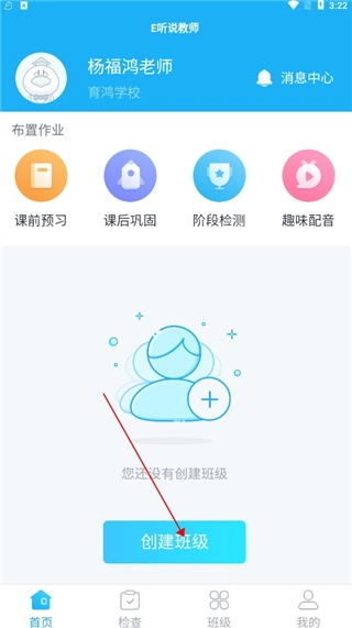 3、成功注册后,进入首页并点击创建班级。