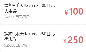 - 煤炉及乐天Rakuma平台上针对指定金额商品的折扣优惠券。