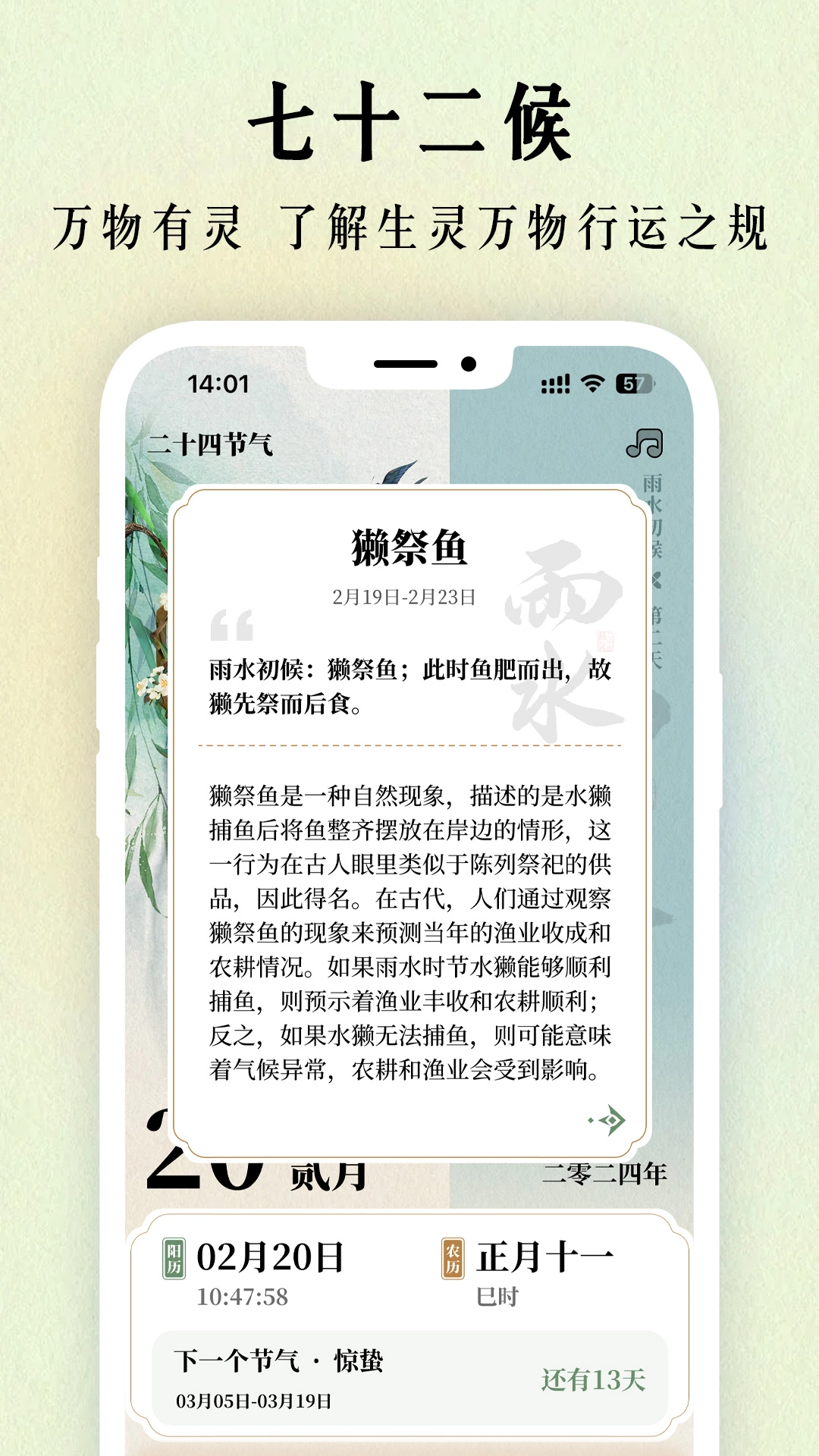 2、全方位呈现二十四节气的起源、风俗习惯以及养生知识等内容,助你深度领略节气文化。