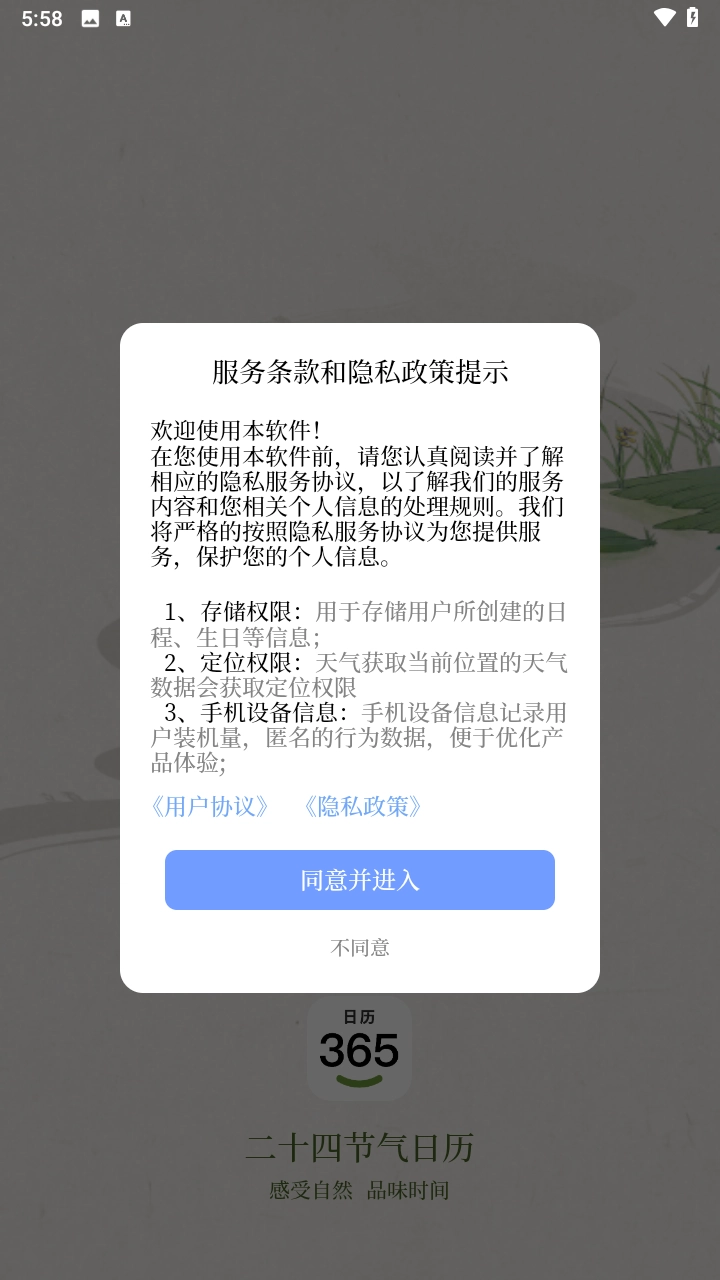 二十四节气日历,这是一款充满国风韵味的日历软件。在这儿,你能直观目睹二十四节气的更迭变化,深入了解我国传统节气知识以及每个节气独特的文化风俗。软件中还具备查看历年老黄历的功能,借此知晓近期的宜忌情况,从而更妥善地规划自己的生活与出行安排。不仅如此,你还能在软件里记录生活中的关键事项,到了设定时间,软件就会准时提醒,确保你不会错过任何重要时刻,便捷又实用!