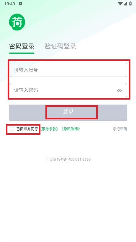 2. 依次输入账号与密码,勾选“已阅读”选项,随后点击登录。