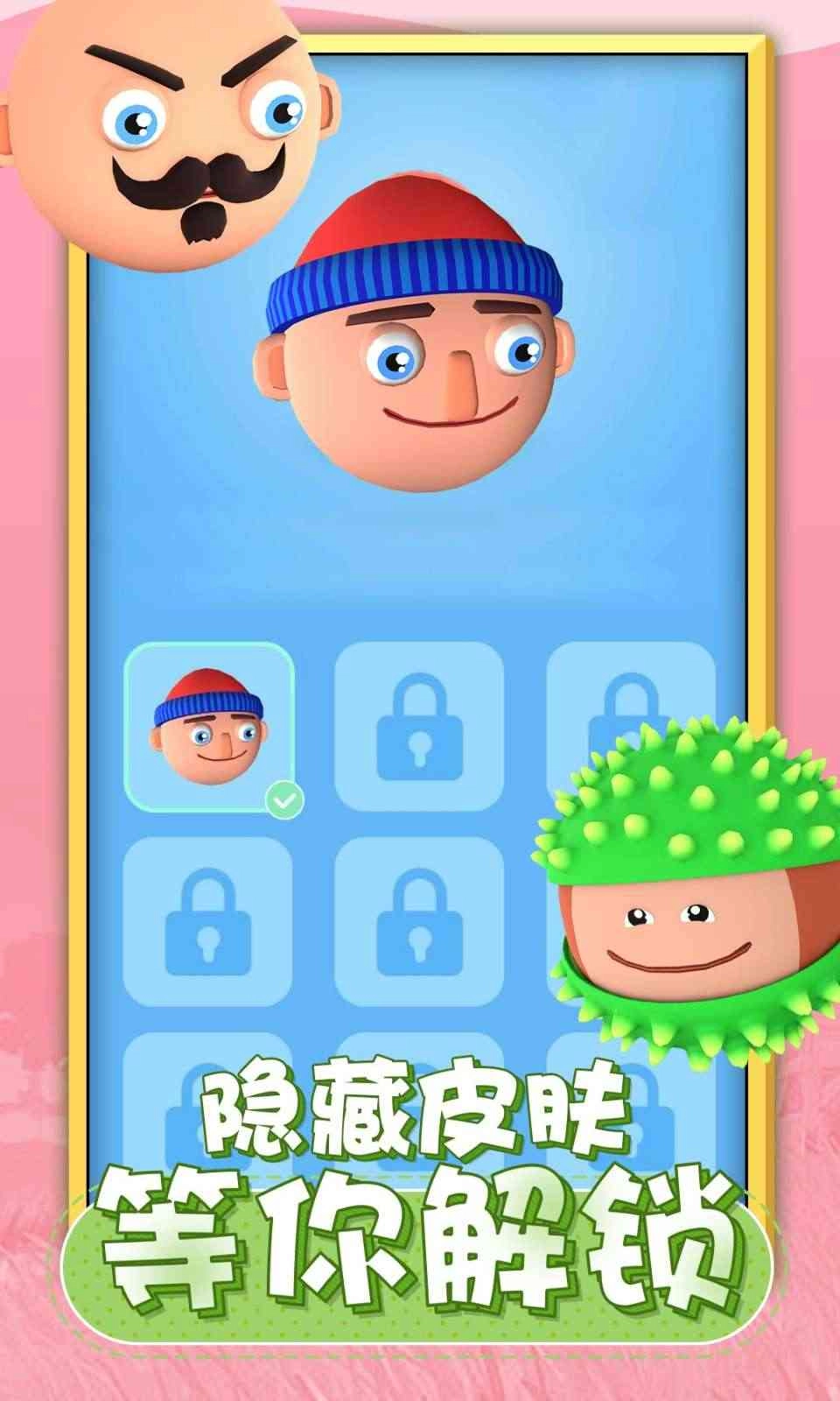 唱跳大头,一款轻松上手的休闲趣味游戏。在这儿,只需轻轻触碰屏幕,你的大头就会欢快歌唱。歌声越响亮,大头跳得越远,就能轻松跨越更多障碍,更快冲向终点线。持续跳跃,顺利闯过一道道关卡,解锁隐藏皮肤。你可以随心挑选喜爱的大头样式,给大头戴上酷炫墨镜,或者让它摇身变成可爱的小动物,一切都由你奇思妙想来决定。这是一款适合男女老少的解压佳作,别犹豫啦,赶紧畅玩起来吧!